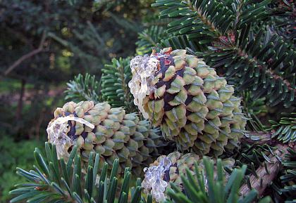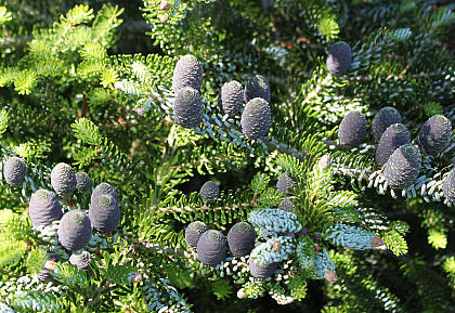 У этой пихты (как и у других пихт) есть и ещё одно украшение, данное природой: шишки тёмно-сиреневого цвета растут не так, как у привычной ёлки — свисая вниз, а наоборот, оптимистично смотрят вверх. Получаются сами собой необычные, живые ёлочные, вернее, пихтовые игрушки…