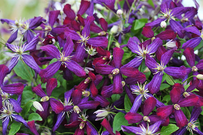 Новый клематис от знаменитого польского селекционера Штепана Марчиньского (Szczepan Marczyski). Лиана достигает 3,5 м. Обрезка сильная. Маленькие (3-5 см) фиолетово-лиловые звездочки на пике цветения полностью закрывают листья. Цветки вначале очень яркие, со временем немного выцветают, что создает фантастическую переливающуюся картину.