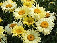 Еще одна красивая новинка — ромашка 'Goldfinch'. Это первый нивяник с действительно желтыми "лепестками", он появился в результате многолетней селекции. В высоту примерно 50 см. Настоящая драгоценность для миксбордеров: в начале "лепестки" лимонно-желтые, а к окончанию цветения приобретают оттенок слоновой кости.