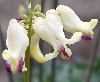 Новая "долгоиграющая" гибридная дицентра с голубыми листьями и кремовыми цветками. Цветет, образуя веер из сердечек на длинных цветоносах, в течение всего лета до заморозков. Причем, цветет обильно.