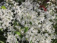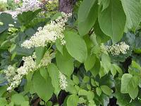 Классическим набором считаются сирени, гортензии, древовидные пионы, спиреи, дейции, барбарисы, миндали, дерены, дафны, курильский чай и листопадные рододендроны. Заметным украшением могут стать древесные и полу-древесные лианы: актинидии, триптеригиум и, конечно, клематисы и плетистые розы.