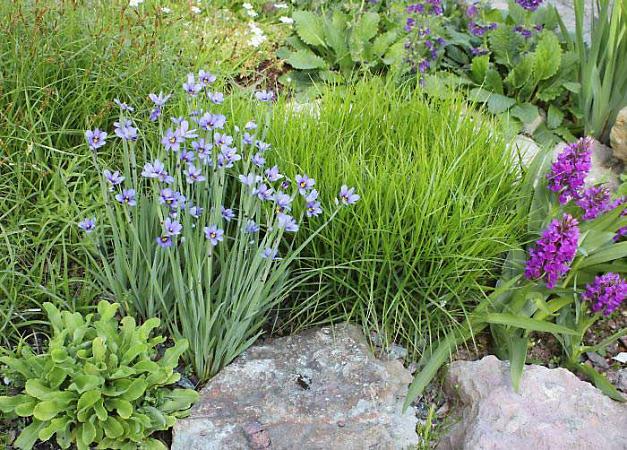 Более всего такой цветник уместен рядом с альпинарием, поскольку является егологичным продолжением. Прообразом должны стать реальные задерненные альпийские лужки, где под сенью злаков и осок, как бесценные сокровища, красуются ярко цветущие коврики и кочки камнеломок, горечавок, проломников, примул и иных луговых альпийцев.
