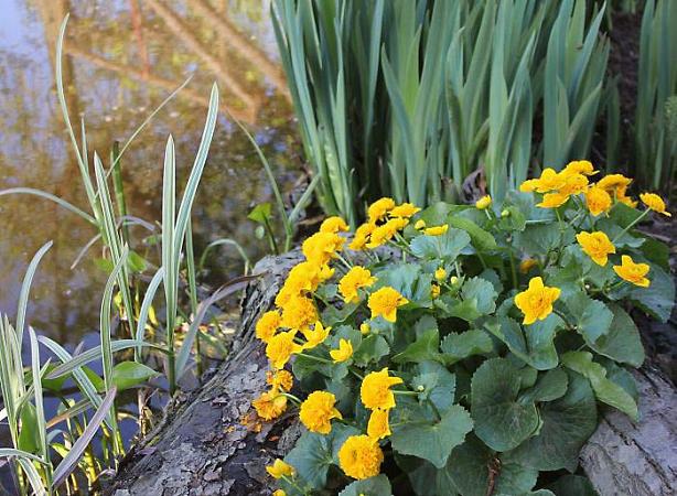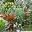 Особое внимание следует обратить на разнообразие видов и сортов влаголюбивых ирисов, которые в прибрежном миксбордере могут стать основой композиции. Очень хороши растения с широкими листьями — бузульники, калужницы, симплокарпусы, лизихитоны, ариземы.