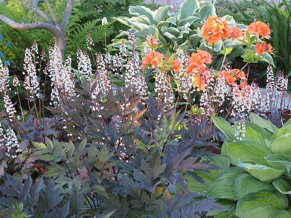 Великолепным дополнением композиции станут папоротники и лесные травы, в том числе и редкие, например: орхидеи-башмачки, печеночницы, ветреницы, горянки, джефферсонии, солданеллы, тиареллы, для которых такое сожительство весьма благоприятно.