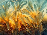 Дальнейшее охлаждение способствует отложению между дендритами, а затем и на дендритах тонких слоев пушистого льда. Быстрые и значительные по величине переохлаждения дают мелкомасштабную дендритную кристаллизацию. При недостатке влаги на стекле нарушается сплошной характер кристаллизации: дендриты растут островками, их формы менее резко выражены, а размеры уменьшены в сравнении с нормальными условиями.