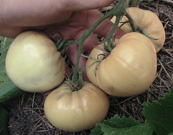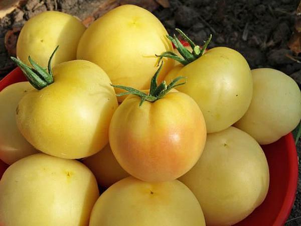 Они отличаются не только необычным видом, но и вкусом. В таких томатах содержится большое количество природного сахара, а также напрочь отсутствует кислота. Самыми яркими представителями белоплодных томатов являются сорта Белая красавица (White Beauty), Белое чудо (White Wonder), Белое сердце, Белая королева, Снежный шар (Snowball).