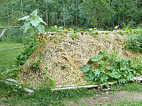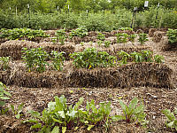 Грядки из тюков соломы требуют меньше почвы, меньше воды и хорошо держат тепло. Когда солома разлагается, она согревает растения и отдает им питательные вещества. Высокая грядка удобна тем, что не надо нагибаться, чтобы посадить семена или собрать урожай.