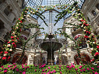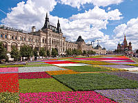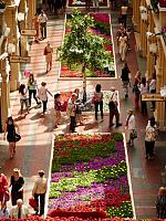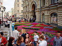 Весь июль ГУМ радует посетителей коврами из летников. В знаменитом универсальном магазине проходит очередной Фестиваль цветов. Этажи и фасад исторического здания благоухают (многие летники имеют сильный аромат).
