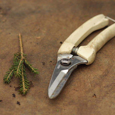 Секатор и дополнительный нож. Для отделения крупных веток (для хранения) удобно пользоваться секатором. Мелкие же веточки лучше срезать острым ножом. Также его стоит использовать для удаления иголок с подвоя и привоя, чтобы не тупить и не пачкать лишний раз основной ножик.