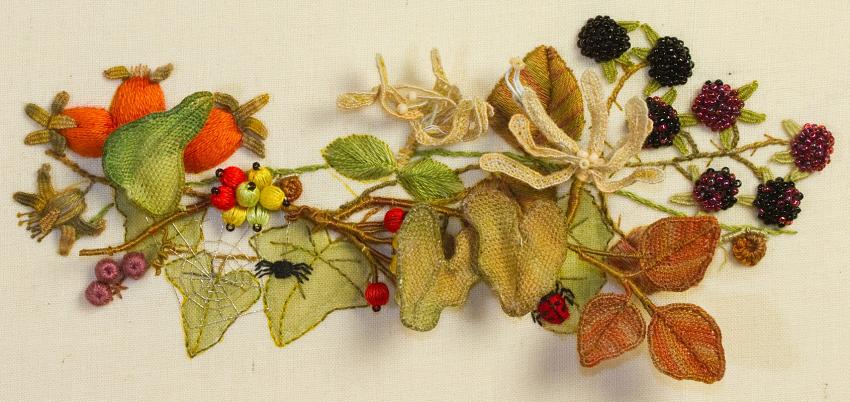 Объёмная вышивка (stumpwork) — это широко распространенная в Англии в 1650-1700 годах техника. Интересна она тем, что позволяет сочетать в себе множество вариантов — от художественной глади до плетения иглой. Если рукодельница владеет большим количеством вышивальных техник, она способна выполнить очень интересные и богатые работы. Наверное, поэтому объёмная вышивка обретает былую популярность.