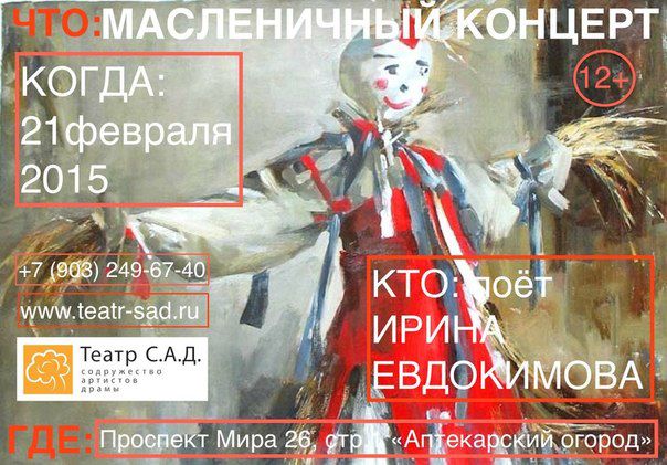 Дата: 21 февраля 2015 г. Начало: в 19.00 ч. Место: Театр С.А.Д. (оранжерея "Аптекарского Огорода")