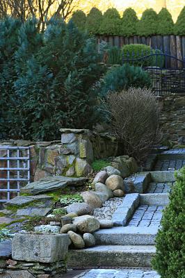В помощь декоративному оформлению своих участков у жителей Яхимова всегда есть верное средство. Это неисчерпаемые запасы камня: глыбы, околы, плитки, обломки разных пород, слагающих Рудные горы, валяются здесь, в буквальном смысле, под ногами, остается их только собрать и разместить надлежащим образом. Поэтому сформировать террасы на склоне, построить сухие подпорные стенки, оформить каменистые горки не составляет особенно большого труда, не требует это и практически никаких расходов.