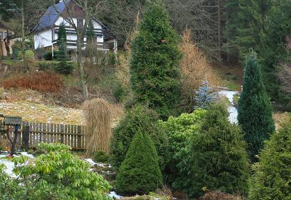 Есть и такие участки, где на первый план выступает декоративный характер их обустройства. Это, в первую очередь, касается посадок хвойных растений, которые в Чехии любят, знают и широко используют.