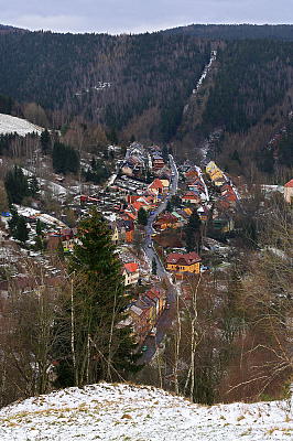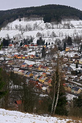 Городок этот расположился в узкой лощине, образованной живописными, занятыми лесами отрогами Рудных (Крушных) гор. Он взбирается на крутые склоны своими улочками, рассыпаясь яркими домишками и поднимаясь на высоту более 700 м над уровнем моря.