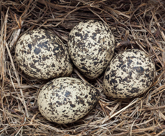 Яйца чибисов имеют покровительственную окраску. Поди разгляди их в траве.