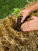 Удобрения мы аккуратно выкладываем мастерком в отверствия в соломе, куда мы перед этим бросили пару ковшей грунта/перепревшего навоза, присыпаем небольшим количеством обычной садовой земли. Красота этого подхода заключается в том, что вам нужно использовать почву только там, где у вас есть растения. Это дешевле и существенно экономит почву.