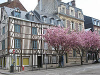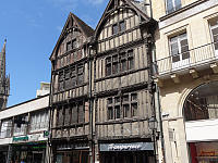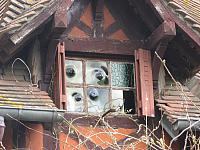 Стиснутый со всех сторон современными зданиями, и ничего, держится
