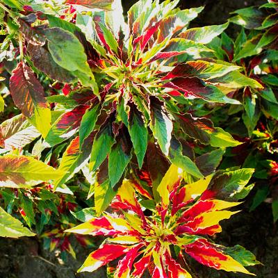 Парад продолжают амаранты, у которых теперь не модно носить цветы бордового цвета. 'Ажурный' (Аэлита) и 'Осенние краски' (Русский огород) щеголяют в медно-золотых тонах. Им вторят клещевины, сменившие красный на пепельно-розовый.