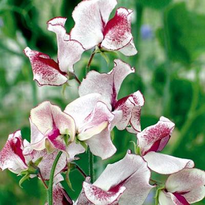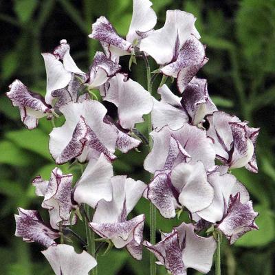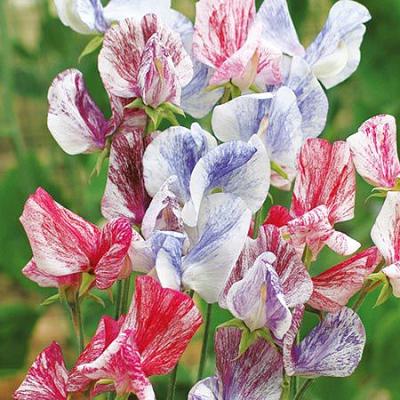 Безусловной удачей в жанре "летники на срезку" считаю английские сорта душистого горошка (Suttons Seeds, Unwins). Расцветка просто удивительная. 'Starlight', 'Nimbus', 'Wiltshire Ripple', 'Madame Butterfly' и им подобные вызывают восхищение сложным изысканным узором, образованным штрихами и точками контрастного цвета. "Русский огород" предлагает смесь 'Фантазия', по которой, если не удастся достать английские семена, вполне можно составить впечатление об этом чуде. Подойдет и 'Сиреневый дрозд' (Гавриш).