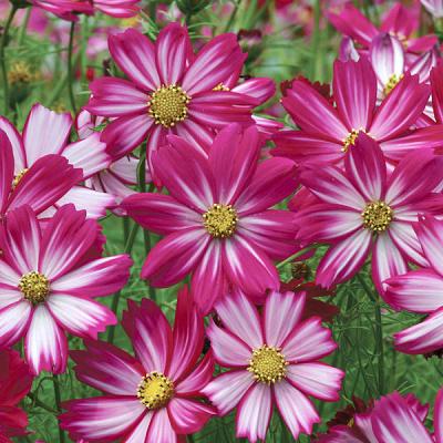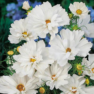 Космос 'Махровое чудо' (РС) или 'Дабл клик Роуз бон-бон' (Русский огород), сфотографированный в фас и в профиль, собирает только восторги. Действительно, он очень красивый! Однако если полистать подборку фото тщательней, можно найти изображения растений в полный рост. На них видно, что супермахровые цветы слишком тяжелые, стебли космоса ломаются. Я бы предпочла полумахровые сорта 'Псише' (Русская дача) или 'Косимо коларетте' (Русский огород), они еще и зацветают раньше других.
