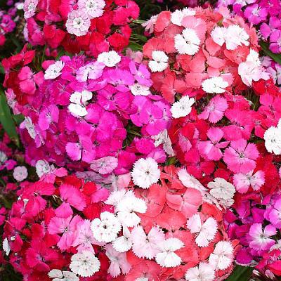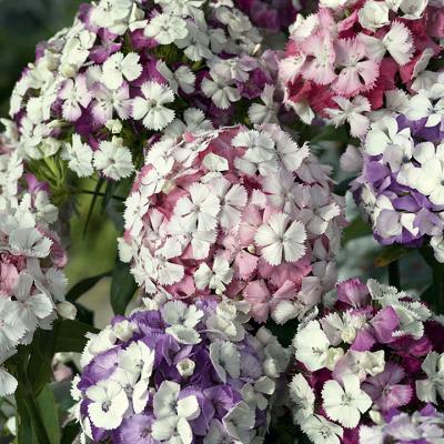 Впрочем, было бы смешно долго брюзжать, когда предмет разговора — цветы. Кто станет хмуриться на празднике? Вот гвоздики. Я очень люблю турецкие. Но они же двулетние. Теперь, благодаря усилиям селекционеров, появился гибрид с турецкой гвоздикой, зацветающий в год посева, 'Новерна Клоун' (Русский огород), 'Kaleidoscope' (Suttons). 'Новерна' — медалистка 2007 года. Цветки с возрастом меняют окраску, благодаря чему на каждой шапке можно увидеть одновременно белые и яркоокрашенные (розовые, красные, сиреневые, персиковые). Цветение очень длительное. Растение устойчивое и неприхотливое.