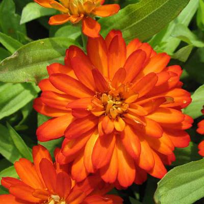 Циннии из сортосерии 'Zahara' (Русский огород) не боятся засухи, не болеют, и что особенно ценно не выгорают. У сорта 'Double Zahara Fire' (победитель 2011 года; отдельно в продаже пока нет, только в составе сортосмеси) ещё и цвет замечательный, ярко-медный.