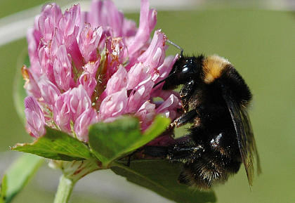 Цветки некоторых растений устроены так, что пчелы не могут их опылить, слишком короткий у них хоботок. Например, клевер опыляется не пчелами, хотя они садятся на него, привлеченные запахом, а шмелями. Не будет опыления - и газонная смесь с белым клевером 'Жемчужины в изумруде' превратится просто в зелёный газон. Живут же шмели в старых мышиных норках, в кучках прошлогодних растительных остатков, которые мы тщательно убираем из сада.