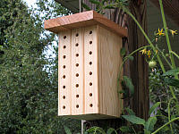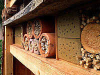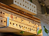 Вот для таких опылителей, живущих в норках, дырочках и дуплах, европейские садоводы уже давно ставят в саду "гостиницы для насекомых". Там селятся пчёлы и шмели, осы (не те, что строят гнезда на чердаке и норовят в августе утопиться в варенье, а тоже одиночные, хищные осы, уничтожающие вредителей сада), а также наездники, пища которых - короеды и древоточцы.