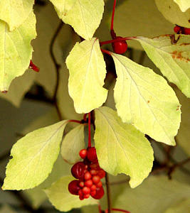 После оплодотворения завязь постепенно увеличивается и удлиняется, из одного цветка вытягивается целая кисть — удлиненное цветоложе с цветоножкой и плодами. Зрелые плоды — карминно-красные сочные ягоды диаметром 5-10 мм. Созревшие плоды не опадают и висят до морозов.