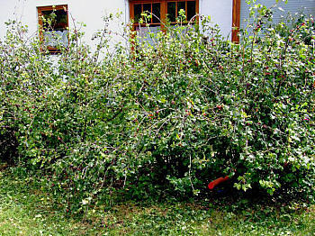 При попытках формирующей обрезки дает много длинных мощных побегов; при сильной обрезке куст слабеет и может погибнуть, так что лучше содержать в свободной форме. Правда, в густых посадках ягод будет мало.