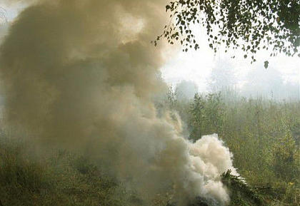 Если возникла необходимость применить метод дымления на большой территории (например, в крупных садах), целесообразнее использовать не костры, а специальные дымовые шашки.
