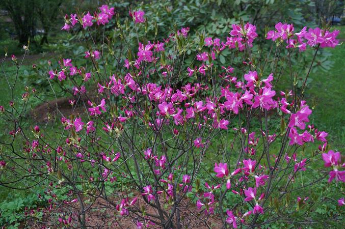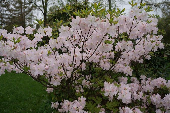 Самый красивый листопадный рододендрон — рододендрон Шлиппенбаха (Rhododendron schlippenbachii Maxim.), представитель флоры Корейского полуострова. Рододендрон Шлиппенбаха зацветает рано — крупные цветки нежнейшего светло-розового тона распускаются в середине мая, когда листья развернуты лишь наполовину. Куст не то что осыпан, он засыпан цветами с головой, не видно ни ветвей, ни листьев — зефирная гора!