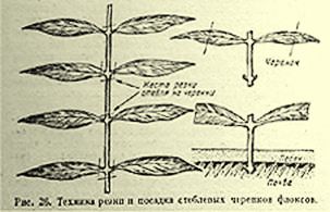 Рис. 26. Техника резки и посадки стеблевых черенков флоксов.