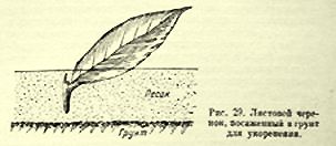 Рис. 29. Листовой черенок, посаженный в грунт для укоренения.