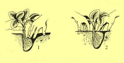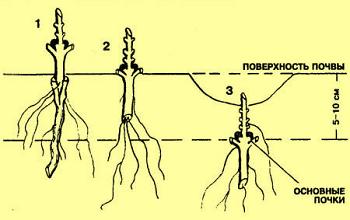 1 - правильная посадка, сердечко на уровне почвы, 2 - неправильно, сердечко заглублено, 3 - неправильно, сердечко слишком высоко