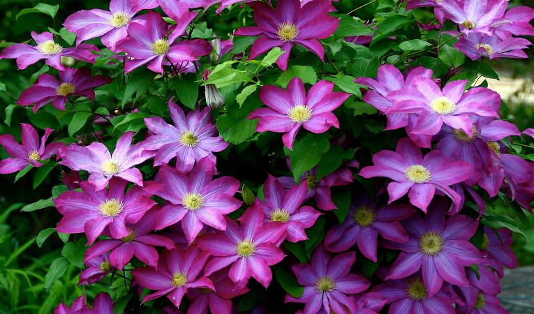 Место посадки клематиса ограничивают четырьмя кирпичами, поставленными на ребро по периметру квадрата, в центре которого высаживают растение. Это позволит удобно укрыть клематис на зиму и уменьшит его пересушивание и перегрев в жаркое время. Место для клематиса должно быть солнечное с южно, юго-восточной или юго-западной стороны построек или оград.