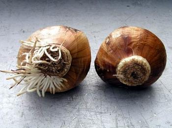Слева мы видим передержанную луковицу, она уже в группе риска, справа - нормальная луковица для посадки