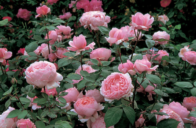 Жизнестойкость и цветение. Способность к повторному цветению Остин напрямую связывает с жизнестойкостью розы. Все английские розы, за исключением 'Constance Spry', 'Chianti' и 'Shropshire Lass', дают по меньшей мере, две выраженных волны цветения за сезон. В районах с долгим теплым летом многие сорта цветут практически непрерывно. Особенно удачен сорт 'The Mayflower'.
