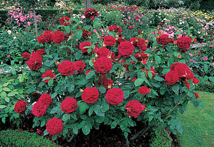 Малиновый и другие оттенки красного. Малиновый цвет пришел к садовым розам от китайских ('Slater's Crimson China'). Есть несколько сильных и здоровых малиновых роз флорибунда, гораздо меньше чайно-гибридных.