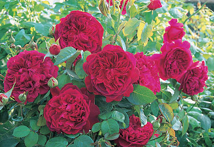 Остину пришлось пройти долгий путь в поисках любимого им чистого насыщенного малинового цвета для своих роз. Хороший пример — 'L.D.Braithwaite'. Сорт 'Benjamin Britten' очевидно ближе к красному.