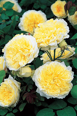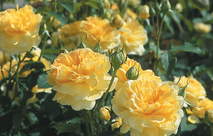 Большинство желтых английских роз относится к группе леандер; светло-желтые есть и в группе мускусных.