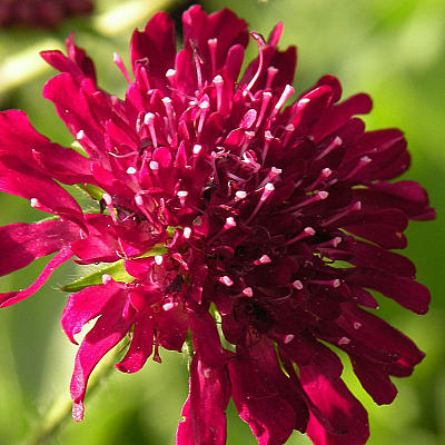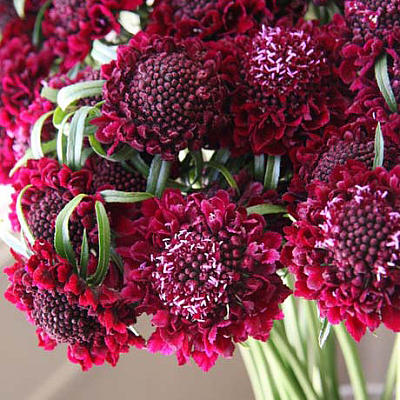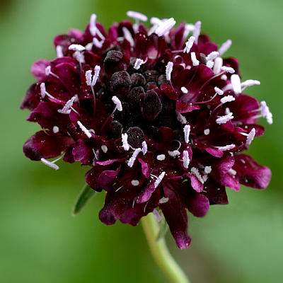 Хочется пару слов сказать о считающейся двулетней скабиозе тёмно-пурпурной (S. atropurpurea). Это очень эффектное растение, но садоводы его прочно записали в отряд летников за неустойчивость к среде произрастания. Создайте ей подходящие условия: выделите теплое, сухое место, раскисляйте почву, не переувлажняйте, на зиму прикройте лапничком, и растение отблагодарит вас цветами редкой окраски.