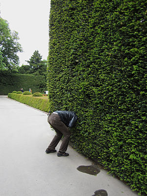 … И всё-таки, мне кажется, атмосфера барокко здесь сохранилась. Например, некоторые посетители сада так живо интересуются топиарным искусством, характерным для того времени, что готовы буквально погрузиться в него с головой.