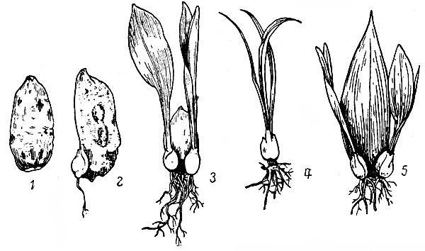 Луковицы, полученные от стеблевых бульбочек, обыкновенно зацветают на второй-третий год и лишь бульбы лилий, цветущих в первый год после посева, цветут летом следующего года.