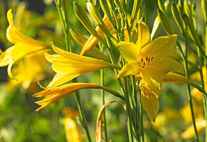 В полутенистых местах прекрасно чувствуют себя видовые лилейники. И называемый слегка презрительно "дворняжкой" лилейник рыжий (Hemerocallis fulva), и лилейник желтый (H. flava), и чуть меньший размером лилейник Миддендорфа (H. middendorffii). Хотя некоторым природным видам лучше живется на солнечных местах. Таков, к примеру, лилейник Форреста (H. forrestii) из Китая.