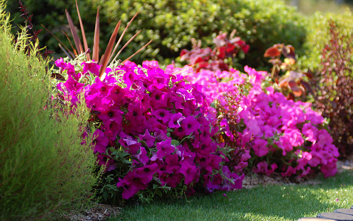 Подойдут для этого участка и незимующие растения, которые хранятся в помещении: георгины, гладиолусы, канны, гальтония — их все равно высаживают после заморозков. И в конце концов всегда есть однолетники, которые в саду работают как скорая помощь. Их рассаду можно покупать и сажать в любое время.
