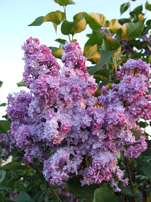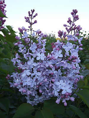Бывает, что сорта, мало меняющие окраску, могут казаться скучными, а особую прелесть мы находим в изменении окраски цветков и соцветий сирени — сегодня она такая, завтра уже другая. Особенно эта изменчивость окраски соцветий выражена у махровых сортов сирени, как за счет разной окраски бутонов и цветков, так и из-за неравномерного раскрытия цветков в соцветии, как, например, у сорта 'Созвездие'.