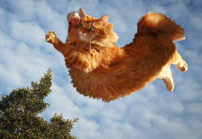 Находясь в воздухе, каким-то чудом, представитель кошачьих махнул лапами, и к своему счастью, но к разочарованию Тины, приземлился уже по другую сторону забора.