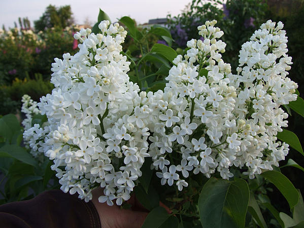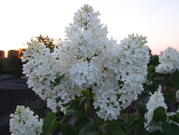 'Белые Вершины'. Большие белые соцветия, словно снежные пики, возвышаются над поверхностью куста. Цветет сорт очень пышно, издали выглядит как снежная гора. Устойчив в культуре, отлично подходит для групповых и аллейных посадок.