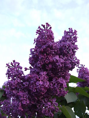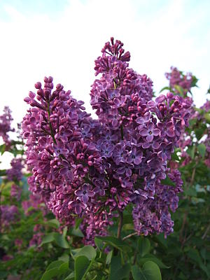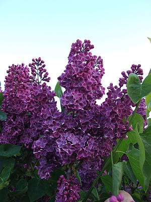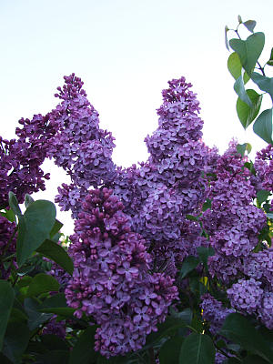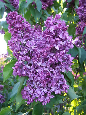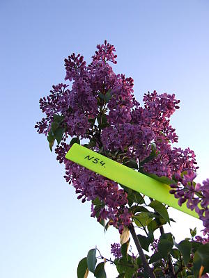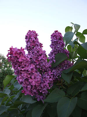 . Этот сорт пример того, как счастливо могут содиниться лучшие декоративные качества простой сирени. Бутоны крупные, пурпурно-лиловые. Цвеки крупные, пурпурно-темно-лиловые. Соцветия очень крупные, многовершинные, плотные, массивные, вертикально направленные. Куст среднерослый, широкий. Зацветает в средние сроки, цветение обильное. Яркий, радостный сорт.